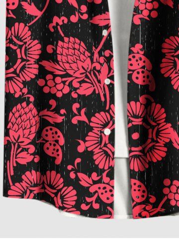 Plus Size Floral Pine Cones Print Hawaii Button Pocket Shirt For Men - Red - 2xl