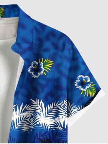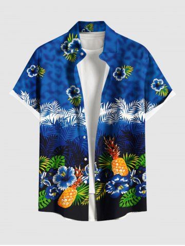 Plus Size Floral Pineapple Tropical Leaves Print Hawaii Ombre Button Pocket Shirt For Men - Blue - M