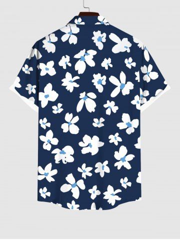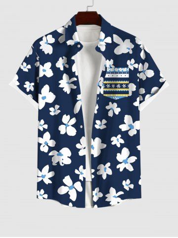 Plus Size Floral Striped Print Hawaii Button Pocket Shirt For Men - Midnight Blue - 3xl