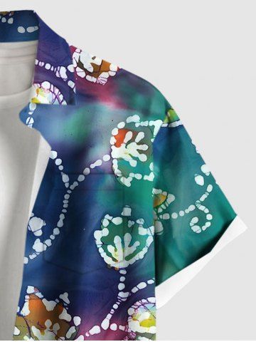 Short Sleeves Shirts > Plus Size Floral Tie Dye Ombre Print Hawaii Button Pocket Shirt For Men