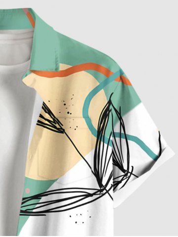 Short Sleeves Shirts > Plus Size Flower Tropical Leaf Sun Colorblock Print Hawaii Button Pocket Shirt For Men