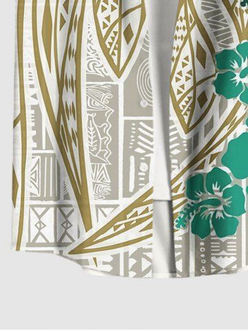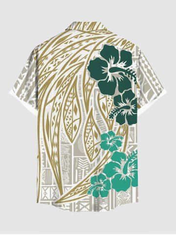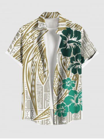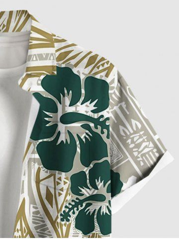 Short Sleeves Shirts > Plus Size Floral Tropical Leaves Line Pattern Print Hawaii Button Pocket Shirt For Men