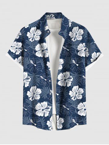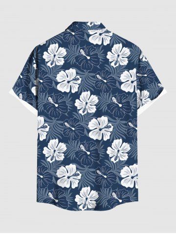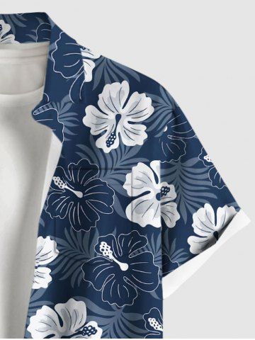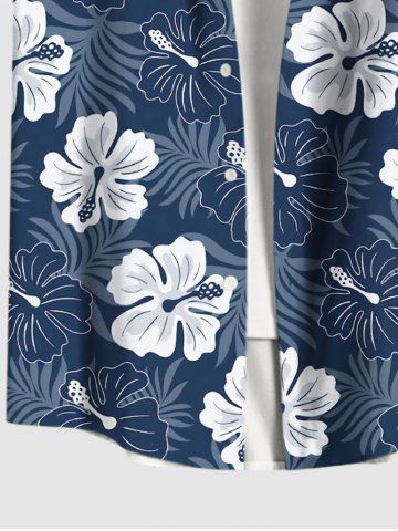 Plus Size Floral Tropical Leaves Print Hawaii Button Pocket Shirt For Men - Deep Blue - L
