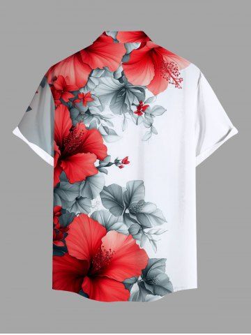 Plus Size Flower Tropical Leaf Print Hawaii Button Pocket Shirt For Men - Red - L