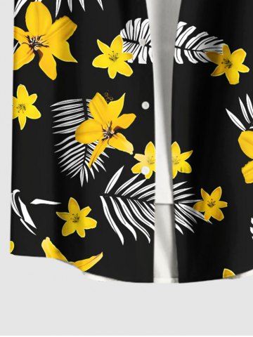 Plus Size Flower Tropical Leaf Print Hawaii Button Pocket Shirt For Men - Black - 5xl