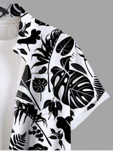 Plus Size Floral Tropical Leaves Two Tone Print Hawaii Button Pocket Shirt For Men - Black - M