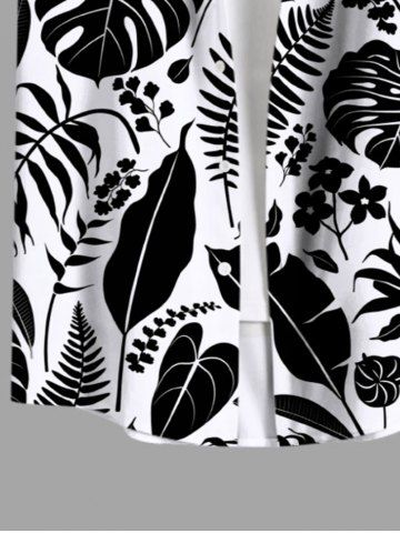 Plus Size Floral Tropical Leaves Two Tone Print Hawaii Button Pocket Shirt For Men - Black - 2xl