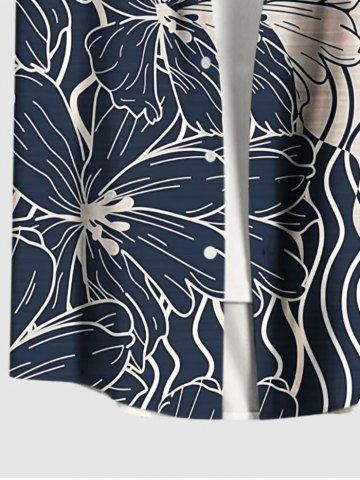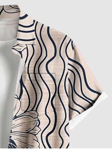 Short Sleeves Shirts > Plus Size Floral Wave Line Two Tone Print Hawaii Button Pocket Shirt For Men