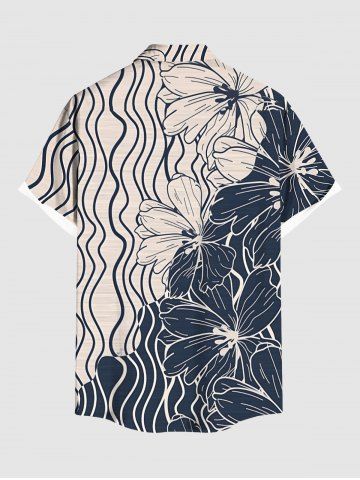 Short Sleeves Shirts > Plus Size Floral Wave Line Two Tone Print Hawaii Button Pocket Shirt For Men