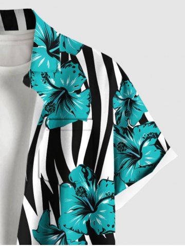 Short Sleeves Shirts > Plus Size Floral Zebra Striped Print Hawaii Button Pocket Shirt For Men
