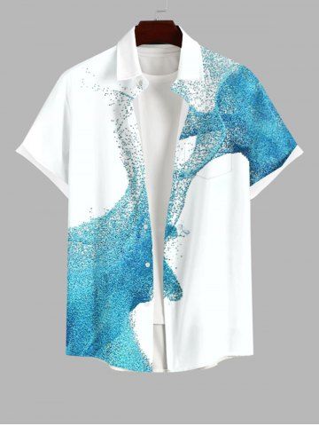 Short Sleeves Shirts > Plus Size Flow Quicksand Print Hawaii Button Pocket Shirt For Men