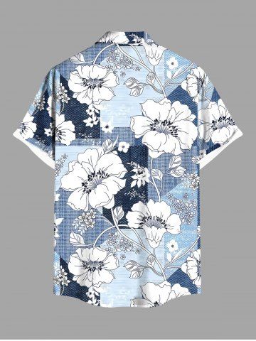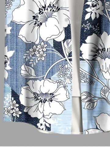 Plus Size Flower Branch Colorblock Print Hawaii Button Pocket Shirt For Men - Powder Blue - 5xl