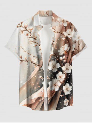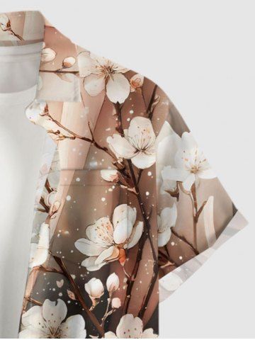 Plus Size Flower Branch Glitter Ombre Print Hawaii Button Pocket Shirt For Men - Apricot - M