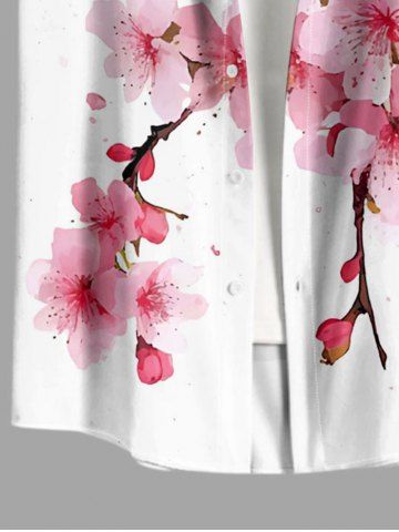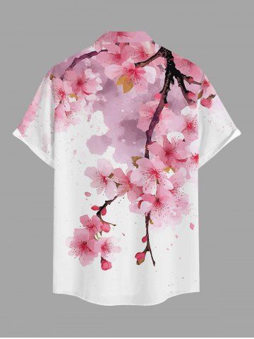 Plus Size Flower Branch Print Buttons Pocket Hawaii Shirt For Men - Pink - M