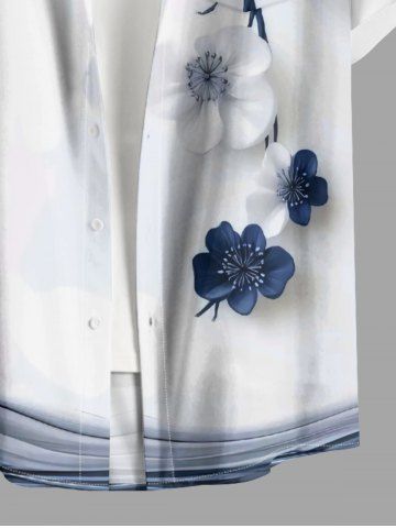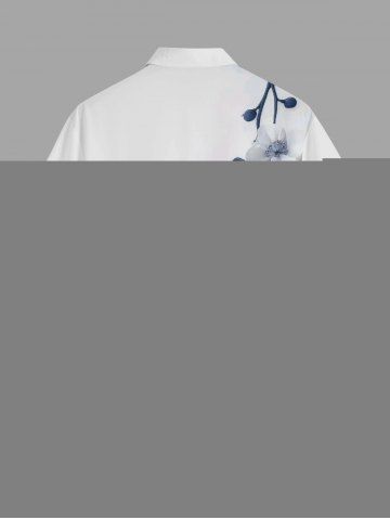 Plus Size Flower Branch Print Hawaii Button Pocket Shirt For Men - White - S