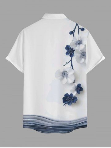 Plus Size Flower Branch Print Hawaii Button Pocket Shirt For Men - White - M