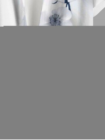 Plus Size Flower Branch Print Hawaii Button Pocket Shirt For Men - White - 2xl