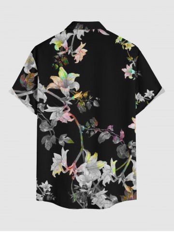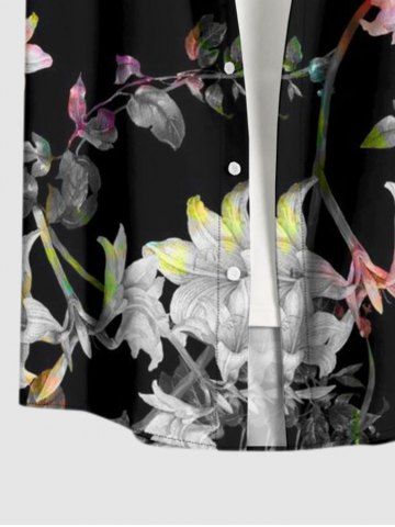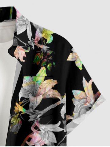 Plus Size Flower Branch Print Hawaii Button Pocket Shirt For Men - Black - 6xl