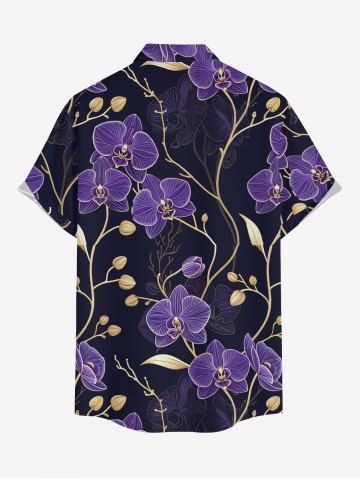 Plus Size Flower Branch Print Hawaii Button Pocket Shirt For Men - Concord - M
