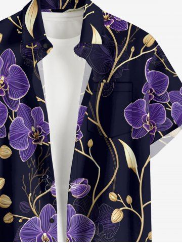 Plus Size Flower Branch Print Hawaii Button Pocket Shirt For Men - Concord - 4xl