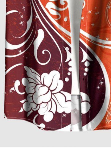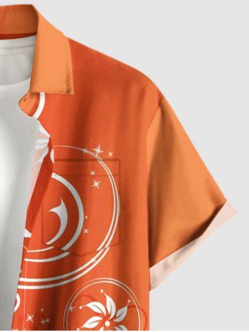 Plus Size Flower Butterfly Curve Print Hawaii Button Pocket Shirt For Men - Orange - M
