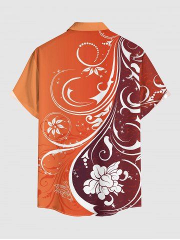 Plus Size Flower Butterfly Curve Print Hawaii Button Pocket Shirt For Men - Orange - 6xl