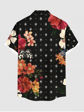 Plus Size Flower Butterfly Eye Print Hawaii Button Pocket Shirt For Men - Black - M