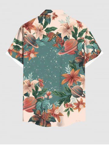 Plus Size Flower Butterfly Planet Colorblock Print Hawaii Button Pocket Shirt For Men - Multi-a - 3xl