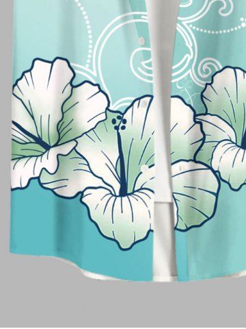 Plus Size Flower Curve Branch Print Hawaii Ombre Button Pocket Shirt For Men - Green - 2xl