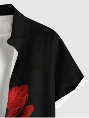 Short Sleeves Shirts > Plus Size Flower Curve Print Button Pocket Shirt For Men
