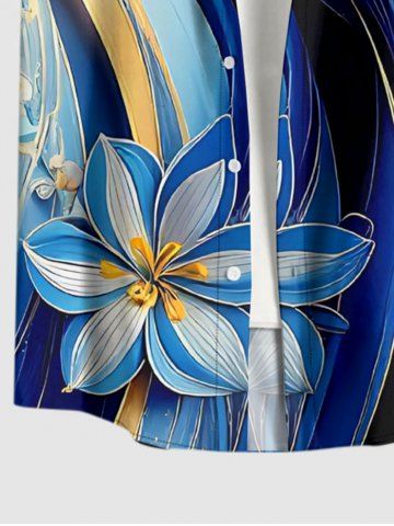 Plus Size Flower Curve Print Hawaii Button Pocket Shirt For Men - Blue - 3xl