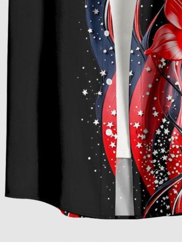 Plus Size Flower Curve Stars Print Hawaii Button Pocket Shirt For Men - Black - M