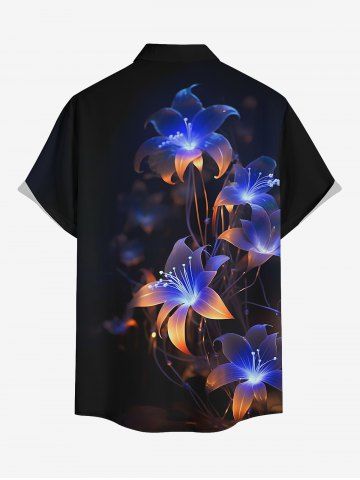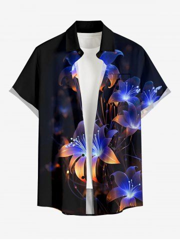 Plus Size Flower Glitter 3D Print Buttons Pocket Hawaii Shirt For Men - Black - L