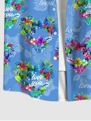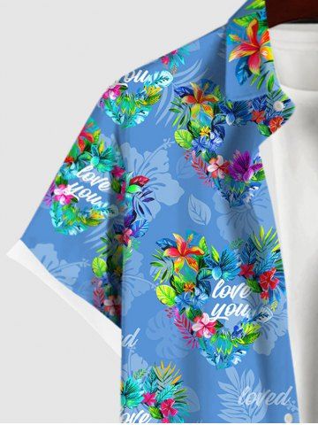 Plus Size Flower Heart Letters Print Ombre Hawaii Button Pocket Shirt For Men - Blue - L