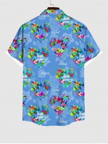 Plus Size Flower Heart Letters Print Ombre Hawaii Button Pocket Shirt For Men - Blue - 3xl