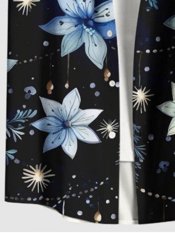 Plus Size Flower Insect Print Hawaii Button Pocket Shirt For Men - Black - 3xl