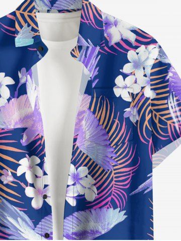 Plus Size Flower Leaf Bird Tropical Print Buttons Pocket Hawaii Shirt For Men - Purple - 4xl