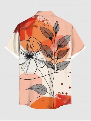 Plus Size Flower Leaf Branch Colorblock Print Hawaii Button Pocket Shirt For Men - Orange - M