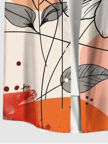 Plus Size Flower Leaf Branch Colorblock Print Hawaii Button Pocket Shirt For Men - Orange - 3xl