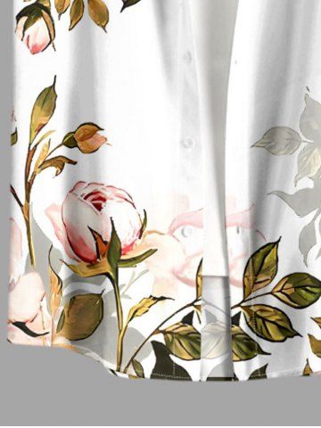 Plus Size Flower Leaf Branch Ombre Print Hawaii Button Pocket Shirt For Men - Olive Green - 4xl