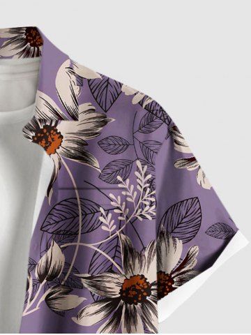 Plus Size Flower Leaf Branch Print Hawaii Button Pocket Shirt For Men - Purple - S