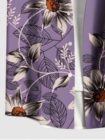 Plus Size Flower Leaf Branch Print Hawaii Button Pocket Shirt For Men - Purple - 3xl