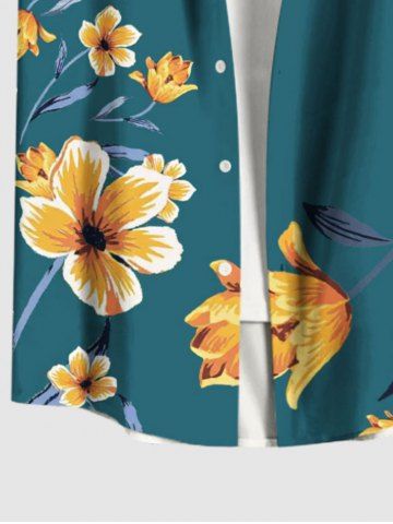 Plus Size Flower Leaf Branch Print Hawaii Button Pocket Shirt For Men - Green - 5xl