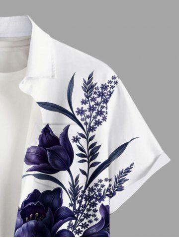 Plus Size Flower Leaf Branch Print Hawaii Button Pocket Shirt For Men - White - 4xl