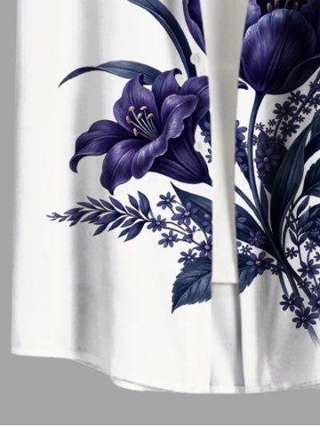 Plus Size Flower Leaf Branch Print Hawaii Button Pocket Shirt For Men - White - 6xl