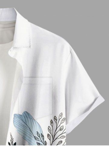 Short Sleeves Shirts > Plus Size Flower Leaf Branch Print Hawaii Button Pocket Shirt For Men