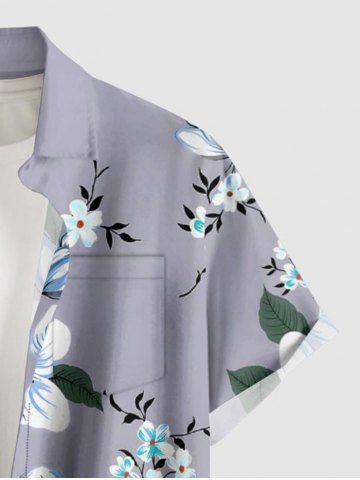 Plus Size Flower Leaf Branch Print Hawaii Button Pocket Shirt For Men - Gray - Xl