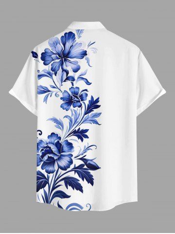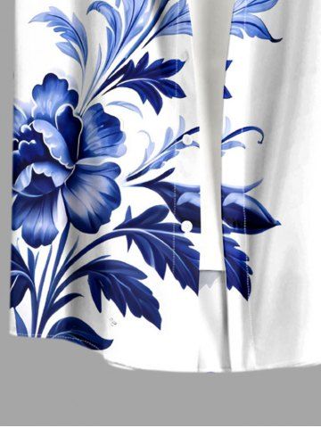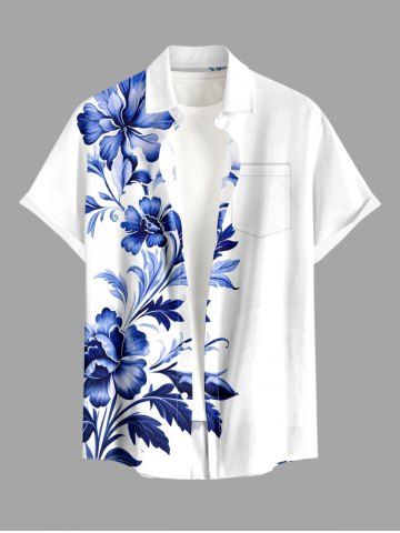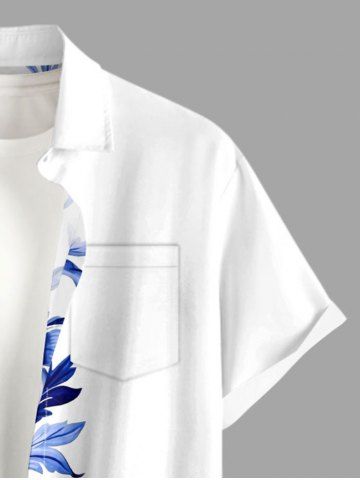 Plus Size Flower Leaf Branch Print Hawaii Button Pocket Shirt For Men - White - 5xl