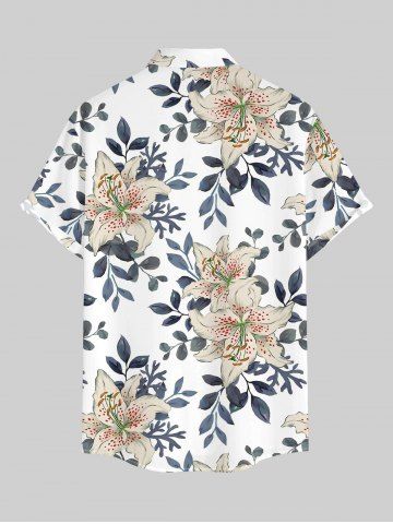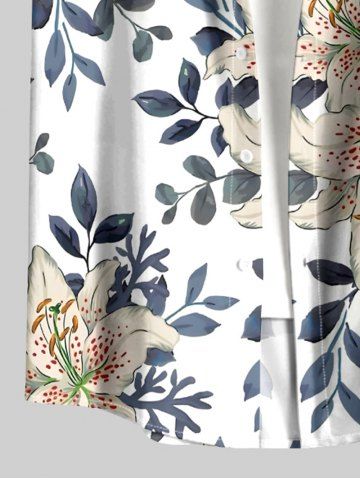 Plus Size Flower Leaf Branch Print Hawaii Button Pocket Shirt For Men - White - Xl