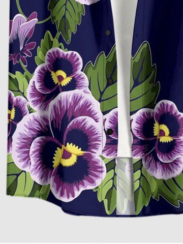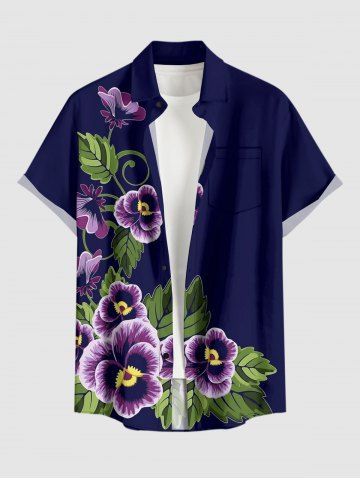 Plus Size Flower Leaf Branch Print Hawaii Button Pocket Shirt For Men - Concord - M
